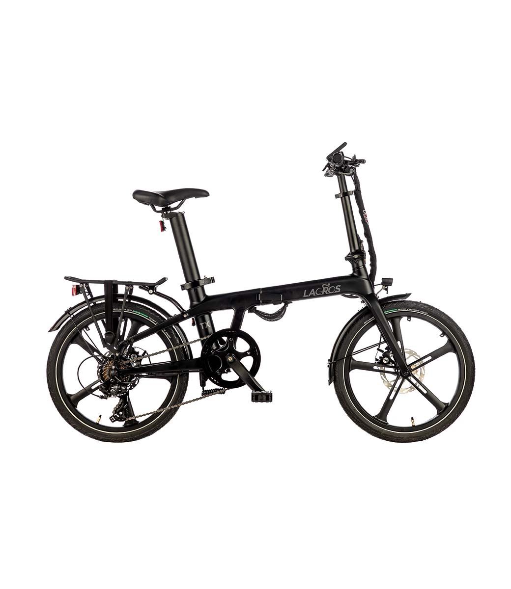 The Lacros TX Carbon electric folding bike. With a powerful 250W rear-wheel motor and 20-inch wheels, this bike offers an effortless riding experience, perfect for exploring the city and commuting.